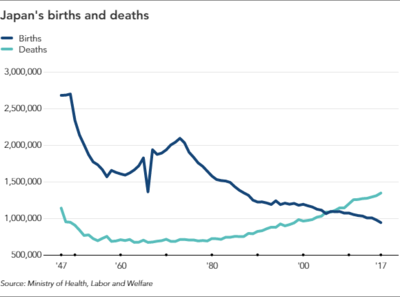 Japanese births are expected to total 941,000 in 2017, the lowest tally in statistics going back to 1899, likely resulting in a natural decline in population by more than 400,000 as deaths mark a postwar peak.